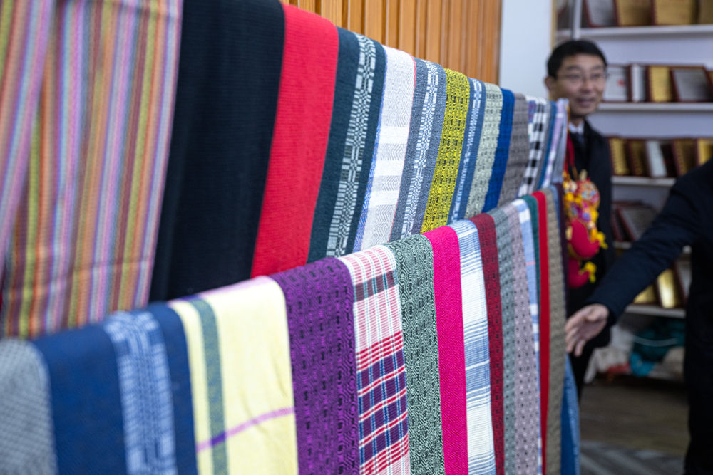陶文成心里清楚,非遗传承不能只靠情怀。学会母亲的纺织绝活后,他运用大学所学的机械常识,对老织机进行了一些“不伤筋骨”的改进,提高了出产功率。他还常常走出红安,参与各类展会。母校安排的脱产训练,他也活跃报名。
